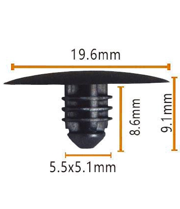 La parte superiore di questa vite è progettata per essere piatta, con un diametro di 19,6 mm e una lunghezza di 8,6 mm, garantendo una vestibilità ravvicinata con tutte le parti del veicolo. La parte rialzata al centro ha un diametro di 5,5 mm e 5,1 mm di altezza. Questo design unico non solo migliora l'effetto di serraggio della vite, ma rende anche il processo di installazione più fluido. Il fondo è una base rotonda piatta con un diametro di 9,1 mm, che fornisce un supporto stabile per la vite. La dimensione complessiva è chiaramente contrassegnata, il che è conveniente per identificare e selezionare rapidamente quando si utilizza.